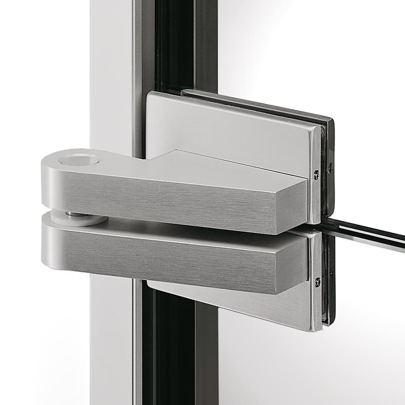 The EA patch fittings stand out due to their small size and the sleek design of their band parts. The program includes many different models and allows for a technically and visually perfect design of all kinds of glass single-action doors – doors installed in frames along with doors integrated into toughened glass assemblies. The fittings are designed in a way that one can easily and quickly create the required glass cutouts and holes.