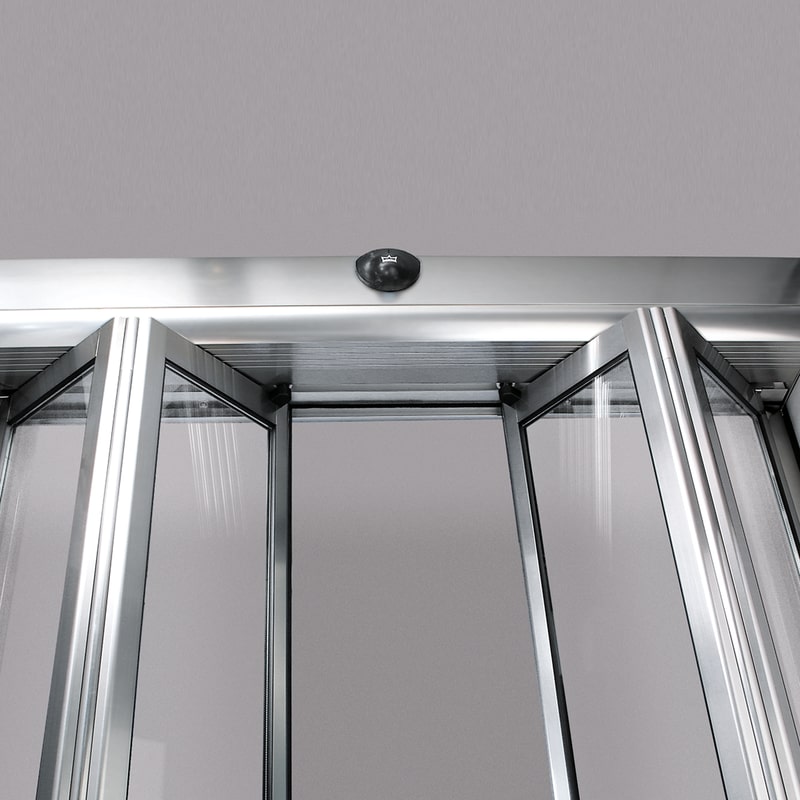 When the door opens, both door panels fold simultaneously and swivel to the sides. This creates large passages although the overall system width is rather small. In addition, the hinges are of jam-free design and therefore especially safe.