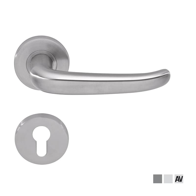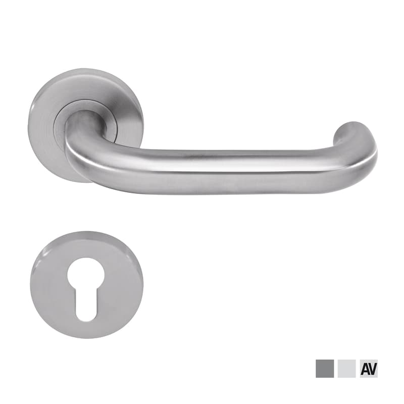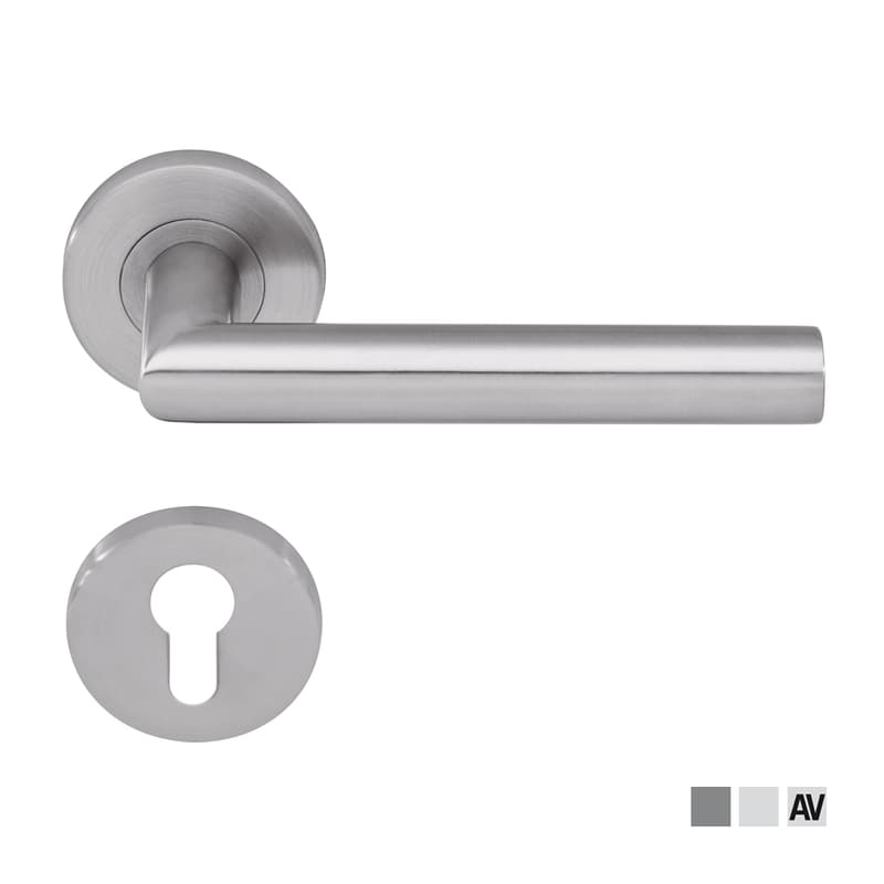 Category of use grade 3 according to EN 1906. 5-year warranty. With adapter ring between lever handle and rose or backplate. Pure fittings are exclusively supplied in matt stainless steel or F1 aluminium. The range available meets standard market requirements. The quality of the surface corresponds to the standard applicable in this market segment. Pure door fittings are supplied as complete sets with return springs already fitted.