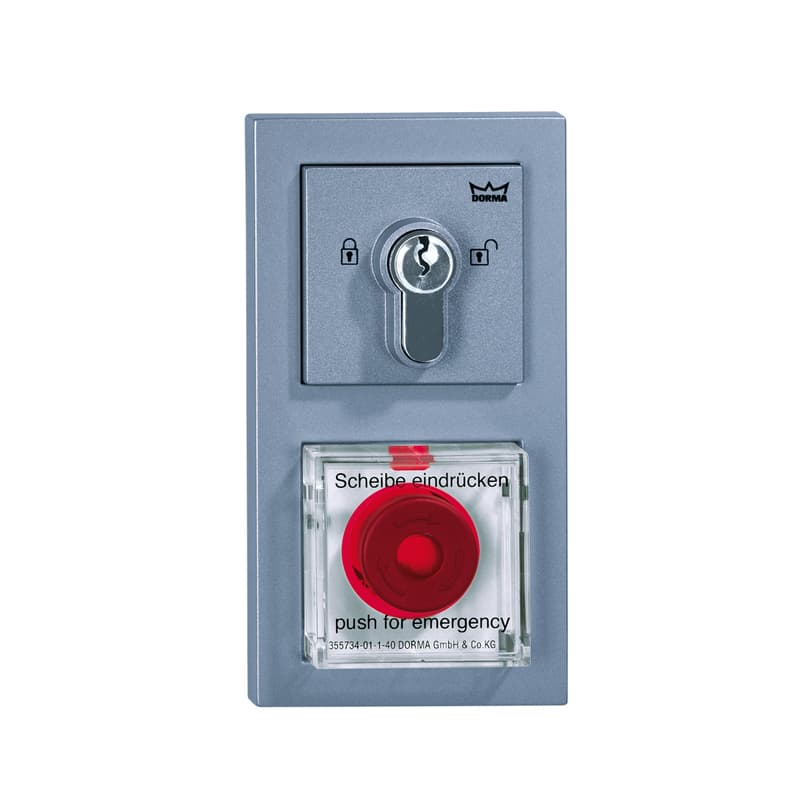 Key switch for the flush-mounted TL-UP Design terminals or the flush-mounted TMS Comfort systems. To unlock and lock doors in escape route security and door management systems.