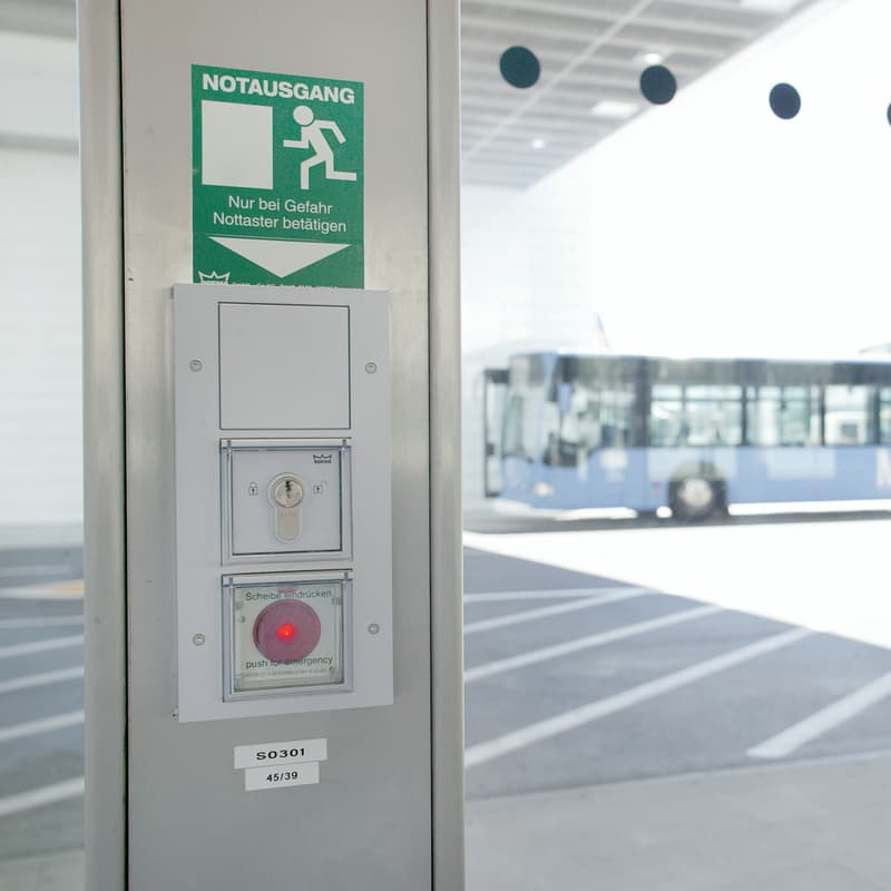 With their compact and elegant design, TL Profile door terminals create entirely new design possibilities, since the Profile escape door components can be stylishly integrated into the overall concept of the building architecture. Just like surface-mounted and flush-mounted terminals, they enable the release of the escape door in case of danger and make it possible for authorised persons to pass through the door and reset the alarm.
